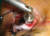 Fig. 5: Betaterapia mediante un aplicador de Sr90 del área desnuda de