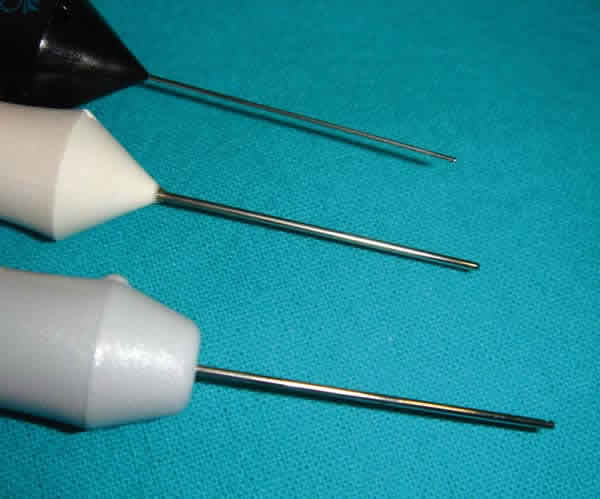 Fig. 1: Diferentes calibres de vitreotomos 25-23-20G.
