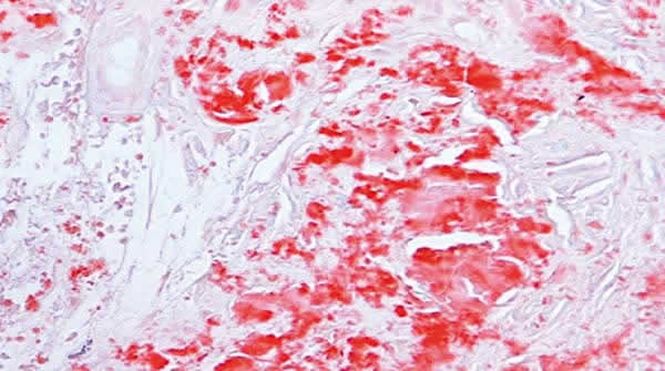 Fig. 2: Tinción positiva al Rojo Congo. Caso 2.