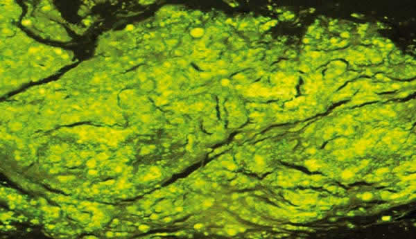 Fig. 4: Fluorescencia del amiloide con Tioflavina-T. Caso 2.
