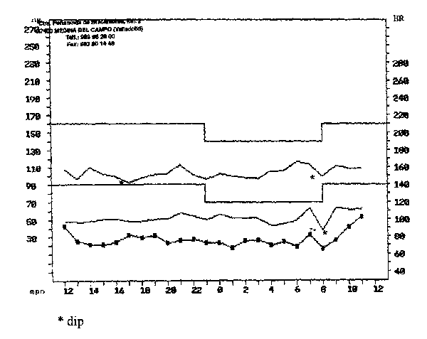 GRÁFICA DE UNA CURVA DE TENSIÓN ARTERIAL DE 24 HORAS.
