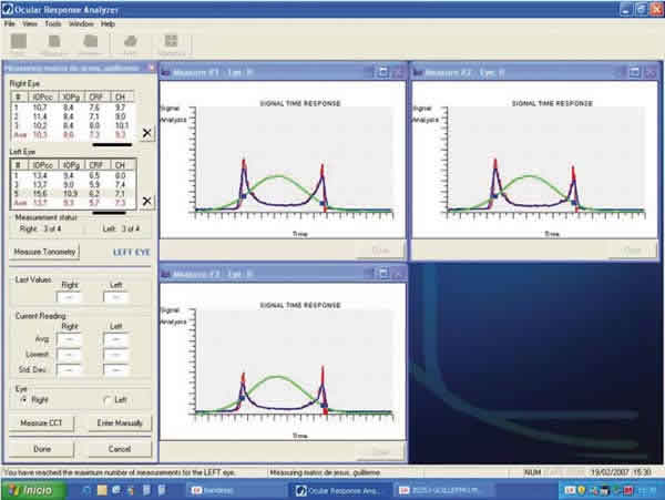 El «O.R.A .Ocular Response Analizer», mide la «Hysteresis (CH)» y el «Corneal Resistance Factor (CRF)» propiedades biomecánicas de la córnea. Se está empezando a implantar su uso en clínica. Valores de CRF y CH menores de 8 son considerados anormales e indicativos de córnea «débil» o «blanda», y en casos dudosos puede ser de utilidad (9).