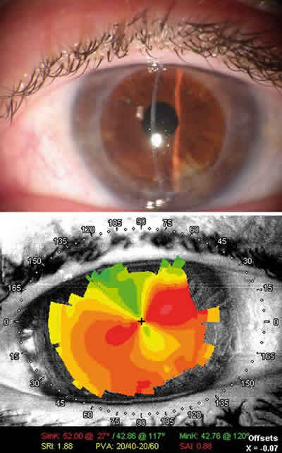 Fig. 1: Alto astigmatismo (10 D) en paciente post QPP.