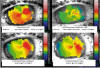 Los detractores de estas técnicas argumentan que sus resultados son frecuentemente insatisfactorios e impredecibles, llevando con frecuencia al desarrollo de astigmatismo irregular (38). No es inhabitual, por otro lado, la regresión postoperatoria, como evidencian las topografías (fig. 3) de la paciente cuyo aspecto biomicroscópico en el postoperatorio inmediato se aprecia en la figura 2.