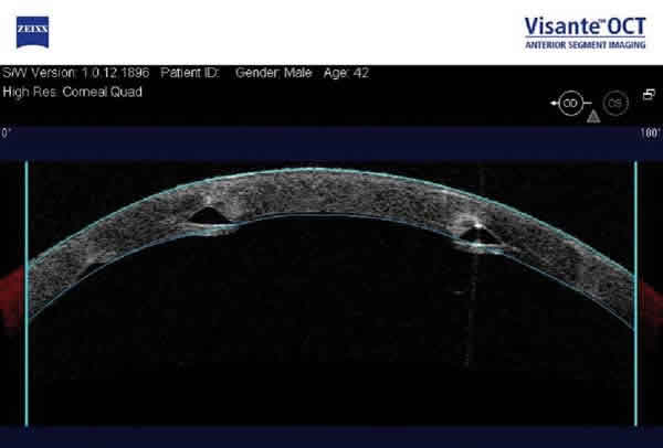 Fig. 6: Imagen de OCT de segmento anterior del paciente de la figura 5. Se puede