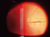 Se realizó una exploración quirúrgica, observándose una solución de continuidad en incisión temporal de la KR, realizándose cierre quirúrgico de la misma con nylon 10.0 y vitrectomía anterior por incarceraciones vítreas. El curso postoperatorio fue correcto, objetivándose un aumento de la PIO que fue resuelto con betabloqueantes tópicos. Se retiraron las suturas a los dos meses, con reabsorción de la hemorragia vítrea. A los cuatro meses se suspendió la medicación hipotensora tópica, observando que con una lente de + 11 D la AV OI era de 6/10 (figs. 1 y 2).