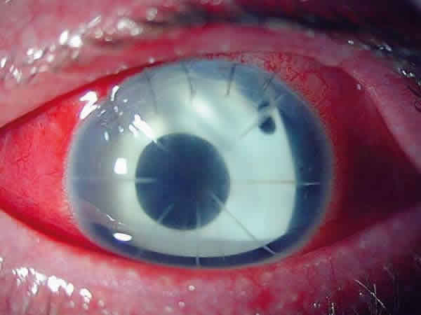 En la bibliografía podemos encontrar diferentes artículos que hacen referencia a las complicaciones tardías de la KR (1) (fotofobia, disminución de AV, leucomas corneales, infección...), y entre ellas la perforación corneal (2,3) a través de uno de los radios tras un traumatismo.