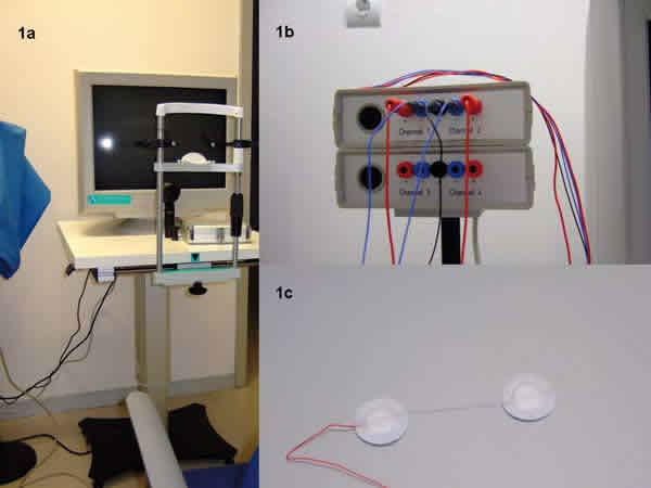 El buen estado de los electrodos su colocación correcta y el mantenimiento del contacto adecuado durante la prueba (baja impedancia) son claves para la obtención de unos resultados fiables. Se pueden emplear electrodos corneales de registro con sujeción en el canto interno y externo, que hacen pasar un hilo conductor por la conjuntiva bulbar cerca del limbo, con buenos resultados y sin incomodidad para el paciente. Los electrodos de referencia y de tierra deben estar bien colocados, sin holgura y con suficiente pasta de contacto. Se deben seguir las recomendaciones del ISCEV referentes a las características, colocación, estabilidad y limpieza de los electrodos.