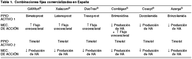 De estar disponibles los preparados con combinaciones fijas de fármacos serían preferibles a dos instilaciones de los mismos agentes por separado. Esto mejoraría el cumplimiento por disminuir la frecuencia de la dosificación. Con combinaciones fijas, los ojos están expuestos a una cantidad diaria de conservante menor (8).