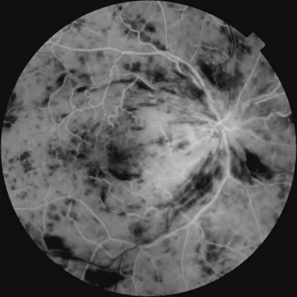 Probablemente la oclusión de vena central de la retina es la patología retiniana en la que el defecto pupilar aferente relativo ha recibido una mayor atención. En este caso resulta útil en el diagnóstico diferencial entre las formas isquémicas y no isquémicas, y por lo tanto su presencia tiene un gran valor pronóstico (fig. 3). El artículo original fue publicado por Hayreh hace más de 20 años (9). En este trabajo, el 90% de los pacientes con una forma no isquémica, presentaban un DPAR de menos de 0,3 unidades logarítmicas, en tanto que el 90% de aquellos que sufrieron una forma isquémica, presentaron un DPAR de al menos 1,2 unidades logarítmicas. El DPAR se convierte de este modo en un método muy sencillo de clasificar inicialmente a estos pacientes. Como resulta fácil de intuir, estudios posteriores han demostrado que presenta una excelente correlación con la angiografía fluoresceínica, la perimetría y el electrorretinograma (10).
