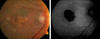 Fig. 2: Retinografía e imagen de autofluorescencia que muestran una zona de 1,5