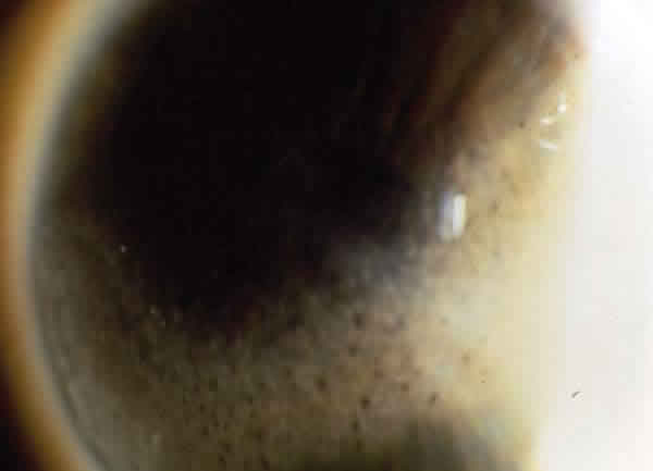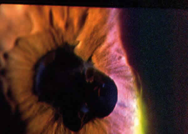 Fig. 1: Uveítis anterior crónica con sinequias iridocristalinianas en paciente