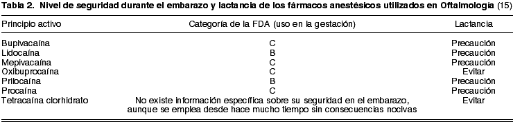 En general, los fármacos anestésicos deben usarse con precaución durante el período de lactancia, intentando evitar el uso de la tetracaína al no disponer de información suficiente (tabla 2).