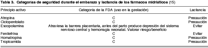Durante la lactancia, todos los fármacos midriáticos deben usarse con precaución, prescindiendo de la fenilefrina y la escopolamina (tabla 3).