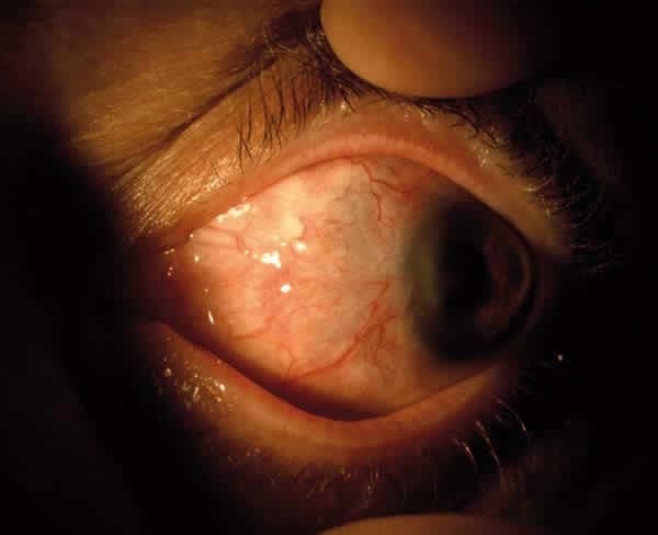 Fig. 1: Hiperemia conjuntival e inyección epiescleral.