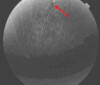 Fig. 1. En la AFG se observa un foco de periflebilis (ver flecha) a las 12