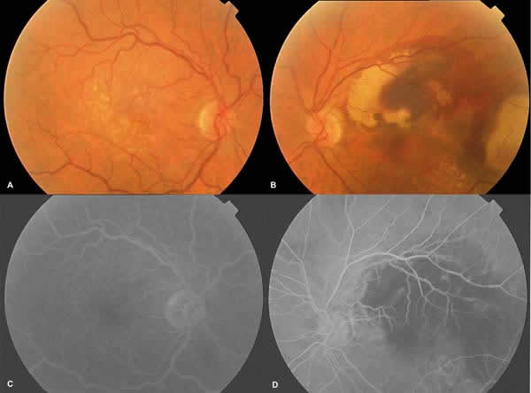 Aunque la forma no exudativa supone aproximadamente el 80% de la DMAE, la pérdida visual grave ocurre en la mayoría de los casos como consecuencia de la forma neovascular o exudativa. La neovascularización subretiniana, aparte de la escara disciforme característica de esta patología, también puede causar hemorragias subretinianas extensas e incluso hemorragia vítrea (HV) con cierta frecuencia, pero la aparición de una hemorragia subretiniana masiva con DR como el de nuestro paciente es poco frecuente.