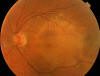 Un año más tarde, acude nuevamente a urgencias por pérdida de AV en OI a movimiento de manos. En el estudio de fondo de ojo se aprecia un desprendimiento de retina (DR) hemorrágico casi total, manteniendo solo la mácula pegada por la placa de DMAE (fig. 3). Se explora la periferia retiniana y se descartan lesiones regmatógenas, por lo que se concluye que el DR es secundario a hemorragia masiva subretiniana. Se plantea vitrectomía posterior con retinotomía para evacuar la hemorragia y favorecer la reaplicación de la retina, pero a la semana el paciente presenta hemorragia vítrea que impide visualizar el fondo de ojo y pérdida de la percepción de luz. Finalmente se desestima el tratamiento quirúrgico por el mal pronóstico visual, unido a su mal estado general de salud. Posteriormente se reabsorbe la hemorragia vítrea pero sin recuperación visual (no percepción de luz).