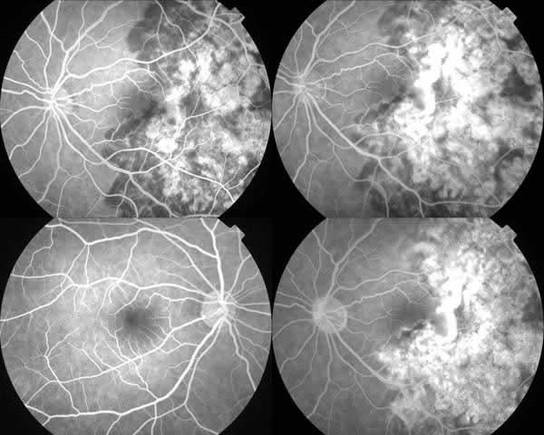 el angiograma precoz e hiperfluorescentes en tiempos tardíos.