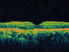 La tomografía de coherencia óptica (OCT) revelaba zonas hiperreflectantes correspondientes a las cicatrices sin edema macular (fig. 4).